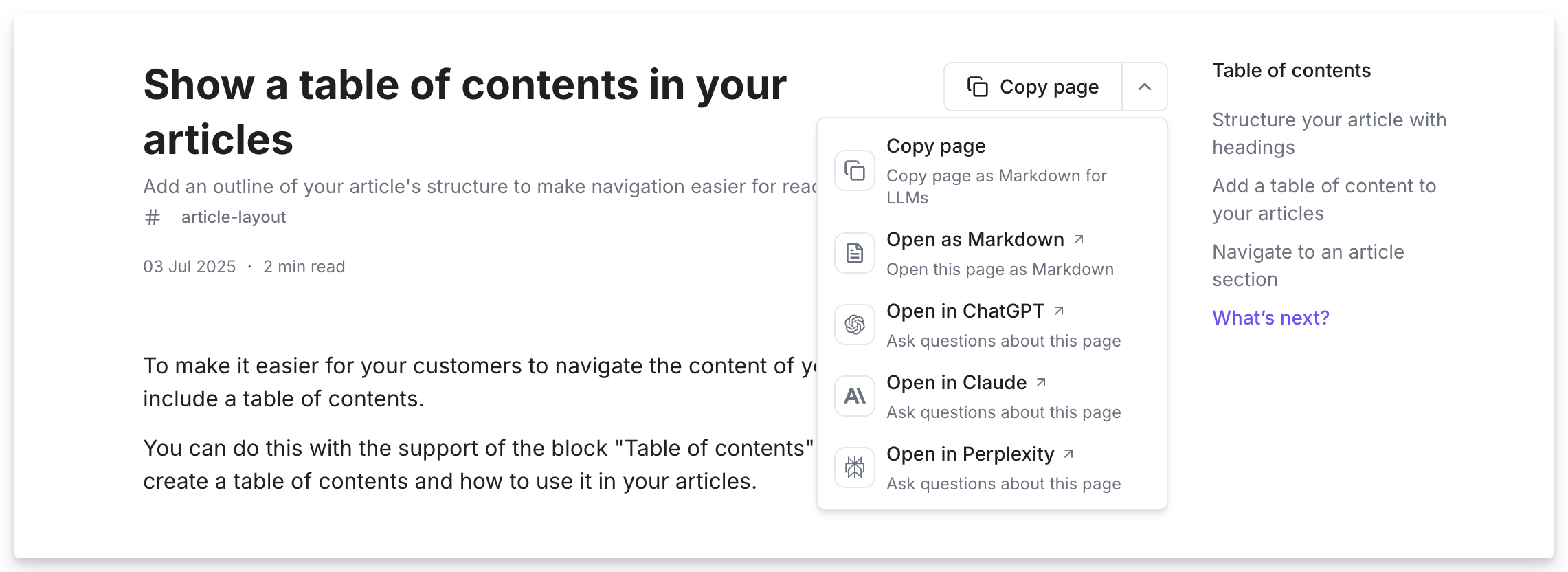 • Copy the article as Markdown to paste into any AI prompt