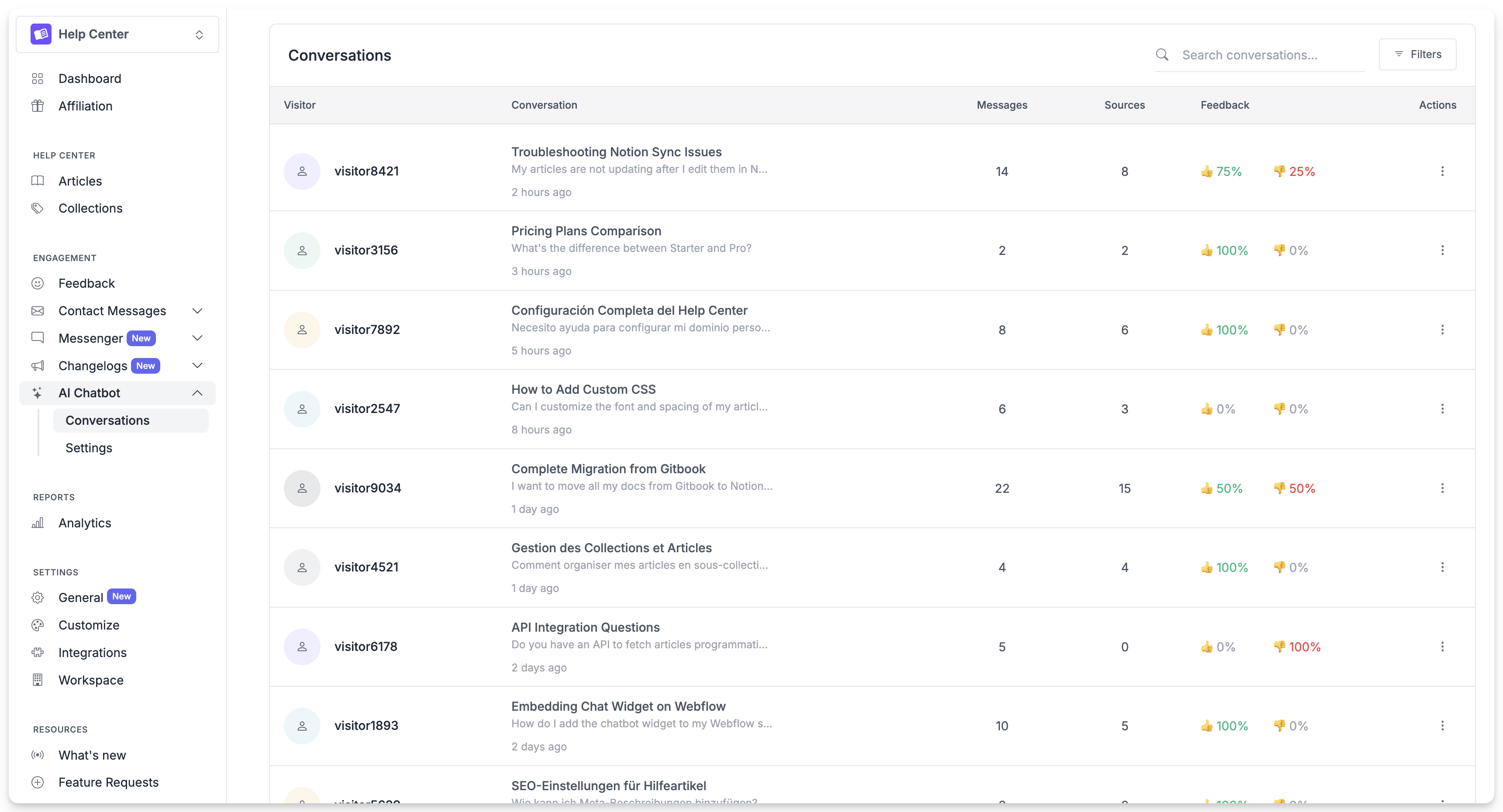 Reviewing chatbot conversations helps you understand how visitors interact with your help center and whether the chatbot is providing useful answers. You can see what questions people ask, how the chatbot responds, which articles it references, and where it struggles.